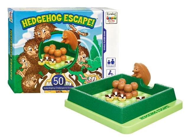 In het spel Hedgehog Escape ga je op zoek naar een logische manier waarop 10 kleine egels kunnen ontsnappen aan de gevaarlijke dassen. De egeltjes zijn bang en moeten als een bolletje naar mama-egel in de haag rollen. Er is altijd maar één manier waarop ze met een enkele rol tot in de haag geraken.