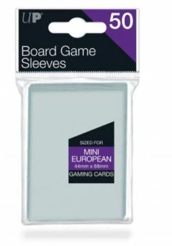 Dit zijn transparante sleeves voor Mini European sized spelkaarten (44×68 mm). Een pakje bevat 50 sleeves.Â