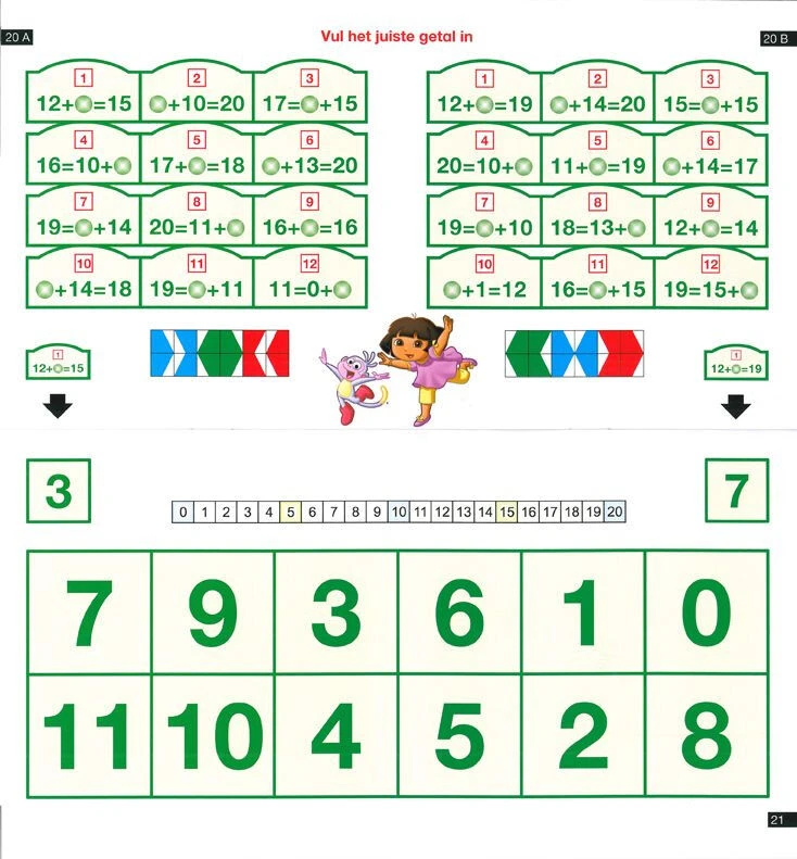 Dit Mini Loco boekje met als thema Dora bevat uitdagende rekenspelletjes van het getal 0 tot 20.