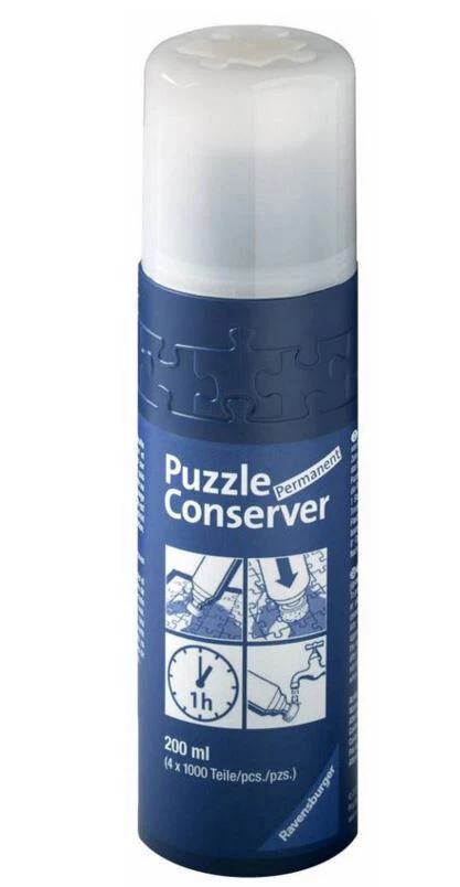 Dit is een flesje gebruiksklare puzzellijm van het merk Ravensburger. De Puzzle Conserver Permanent is geschikt voor het lijmen van 4 puzzels van 1000 stukken.