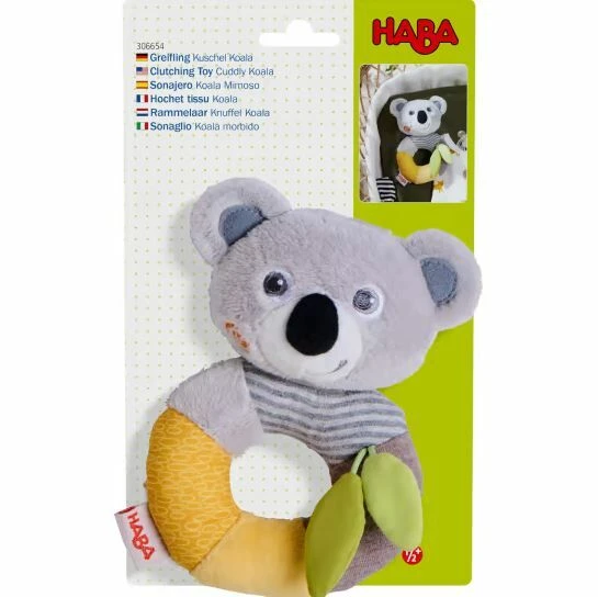 Dit is een mooie rammelaar met een knuffel van een koala. De rammelaar bevordert de fijne motoriek en stimuleert het grijpen bij baby’s.