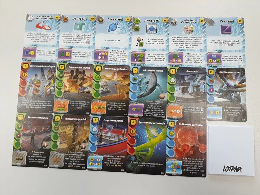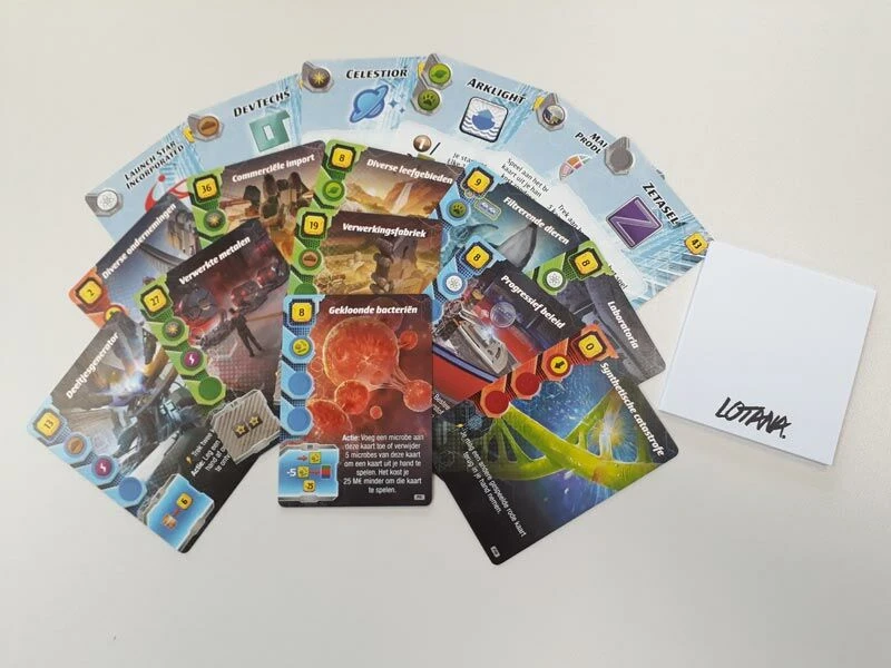 Het promo pack bevat 6 bedrijfskaarten en 11 projectkaarten. De kaarten zijn in het Nederlands.
